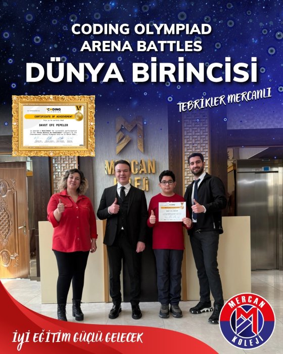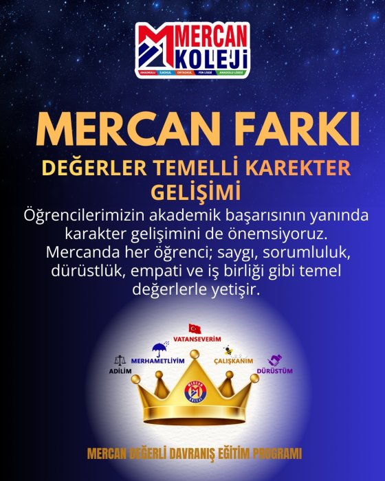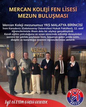 Mercan Koleji Eğitim sektöründe çeyrek asrı aşan tecrübesiyle kurulduğu günden bu yana gelişimi ve başarıyı kendine ilke edinen Mercan Koleji dünya vatandaşı başarılı nesiller yetiştirtiriyor. Ulusal ve uluslararası bilimsel, kültürel, sanatsal, sportif yarışmalarda, lise ve üniversite giriş sınavlarında göstermiş olduğu başarılarla ülkemizde örnek gösterilen bir kurum olmanın haklı gururunu yaşıyor.Mercan Koleji Malatya Kampüsü EN İYİ Anaokulu, İlkokul, Ortaokul, Fen Lisesi, Anadolu lisesi